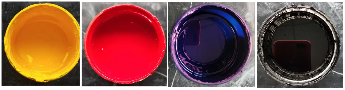 按表1配方,分别制备红、黄、蓝、黑色浆,测试结果见表2。