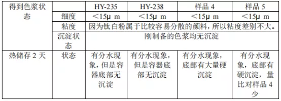 相同配方,不同的分散剂产品,得到的钛白浆体的状态: