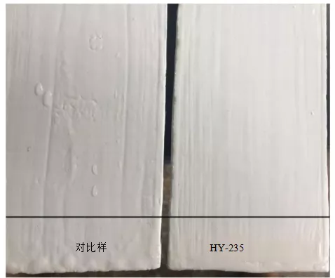 出现鼓泡的现象,HY-235分散剂分散的钛白面漆无异常现象。