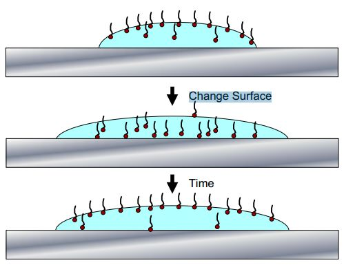 在液体界面处的力与其内部的力有所不同,这是因为在此表面分子上的力不对称分布所致,表面分子具有较高的自由能,此自由能等于移动单位面积上分子表面层所需要的能量。