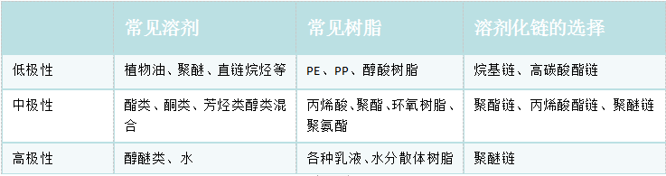 1、分散体系的极性和树脂的成分决定:选择溶剂化链的范围